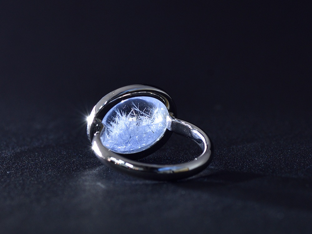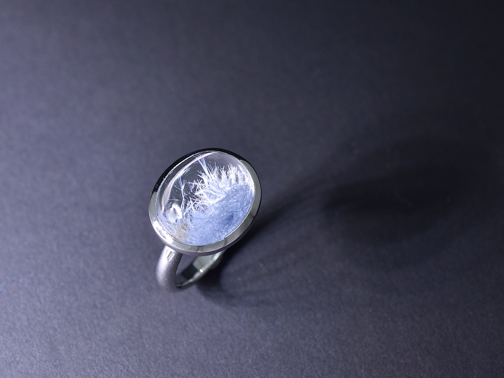 青い針を内包する水晶。デュモルチェライト・イン・クォーツのリング