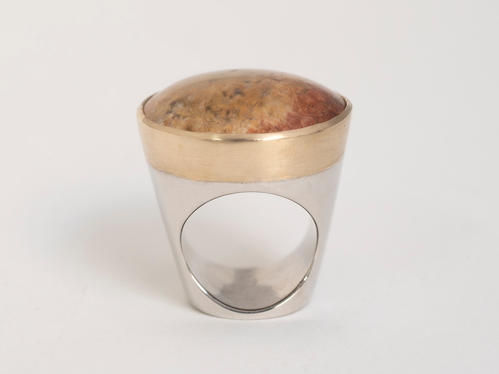 おおきくてとってもきれいなガーデンクォーツを、そのまま楽しめる個性的なリングに仕立てました。