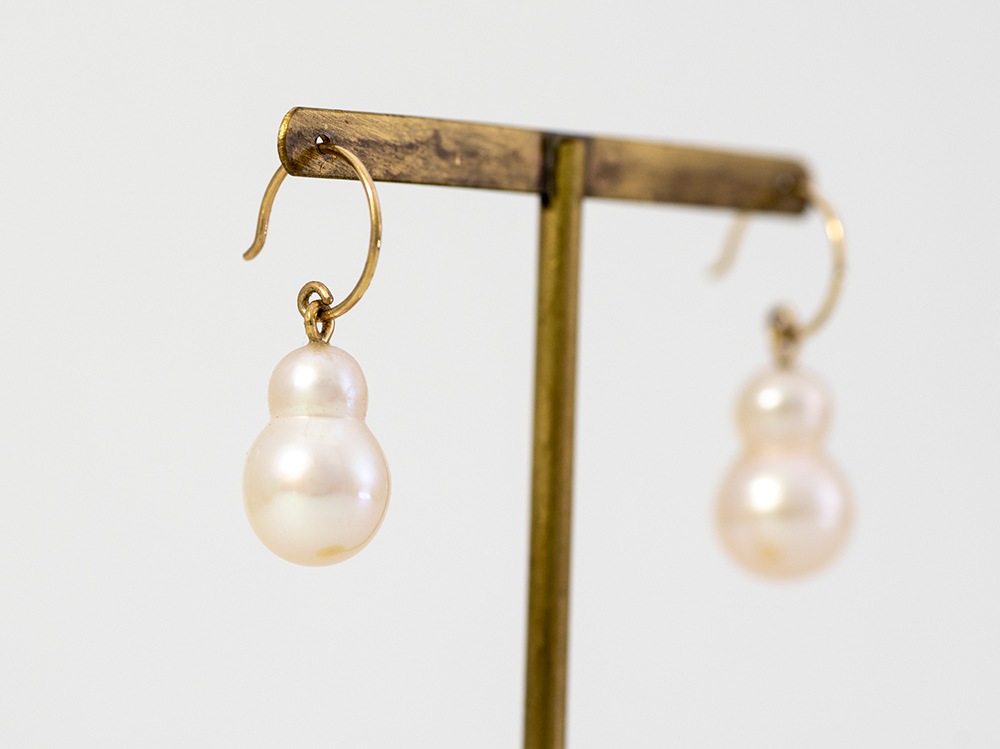 まるでつやつやのゆきだるま 珍しいツインパールの揺れるピアス