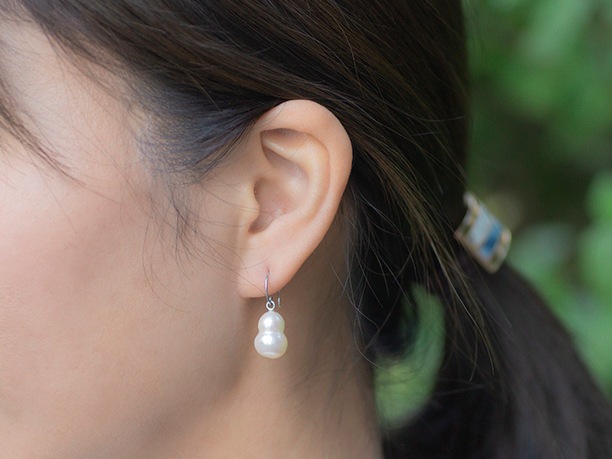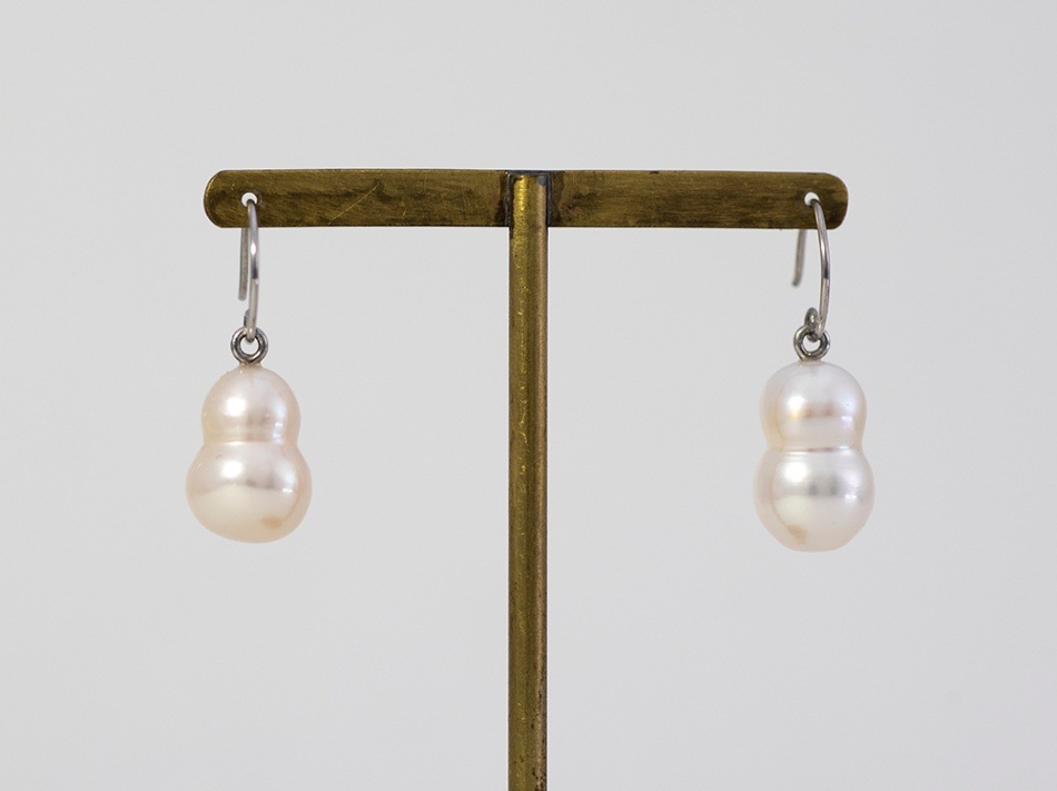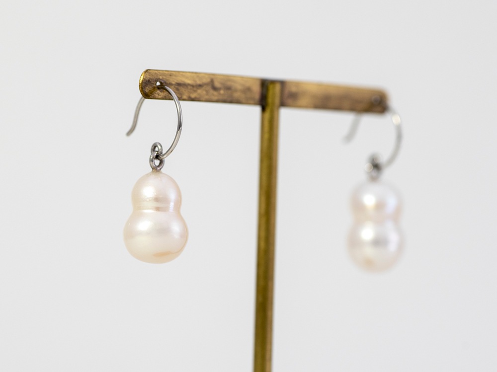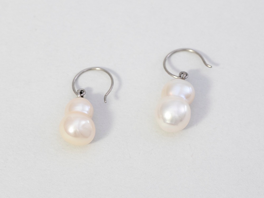 まるでつやつやのゆきだるま 珍しいツインパールの揺れるピアス