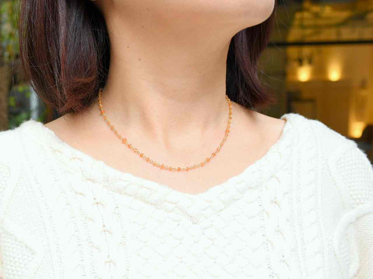 上質で華奢なネックレスです。非常に質の良いオレンジ色のガーネットを贅沢に使用しています。