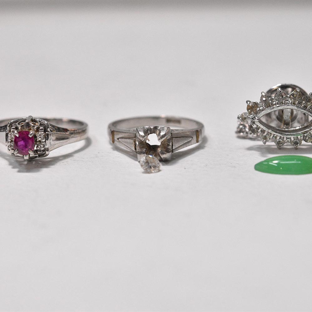 お客様からお預かりした2つのリングとネクタイピンから、一つのペンダントトップへとリフォームいたしました。